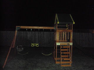 We finally got a Swingset for the kids from Wal-mart. I always felt bad when they would go out and play in our backyard because there was nothing for them to play with. Carter would actually play with the wire fence that blocks off the garden and Bailey would play back by the hose. Carter loved swinging on the swing and Bailey loved going down the slide. I think that they would have stayed out longer if it was not getting so dark and they were not so tired. I am not sure that I am going to be able to keep them in the house now that they have a swingset right in our backyard.